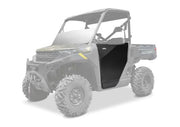 Constructed around a heavy-duty tubular frame and wrapped in a multi-bend aluminum skin, these half doors are engineered for strength without unnecessary weight. The precision-formed panels follow the natural body lines of your Polaris Ranger, resulting in a factory-quality fit and one of the cleanest-looking door systems available.